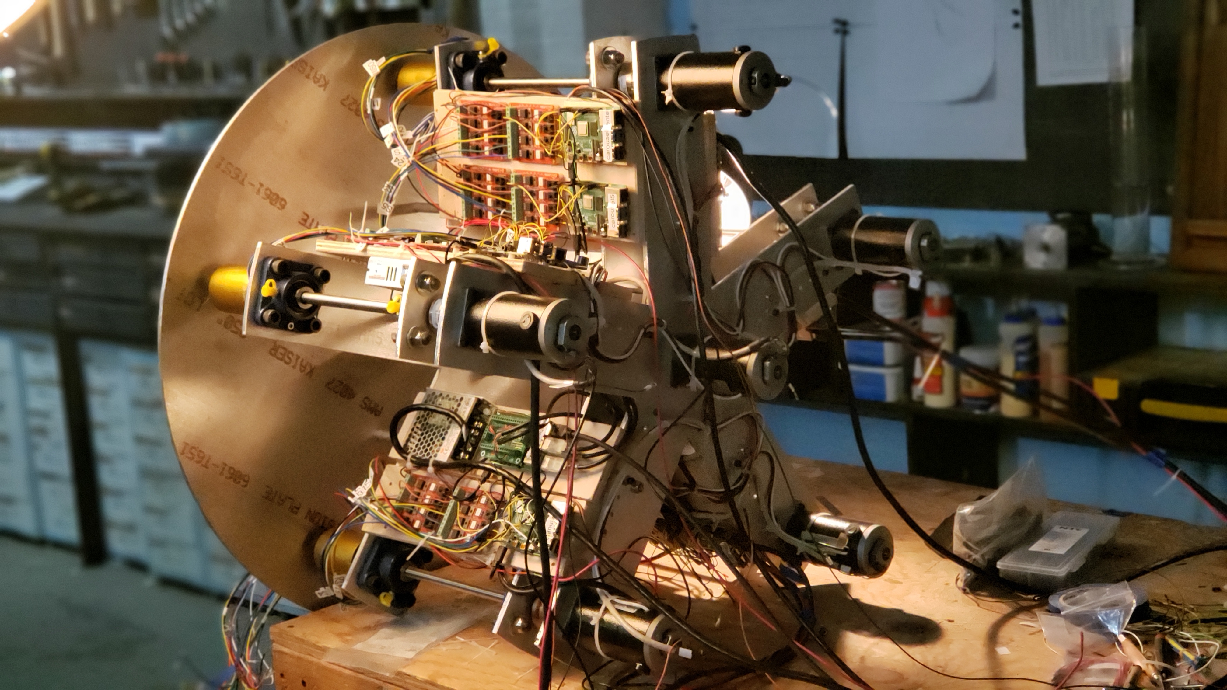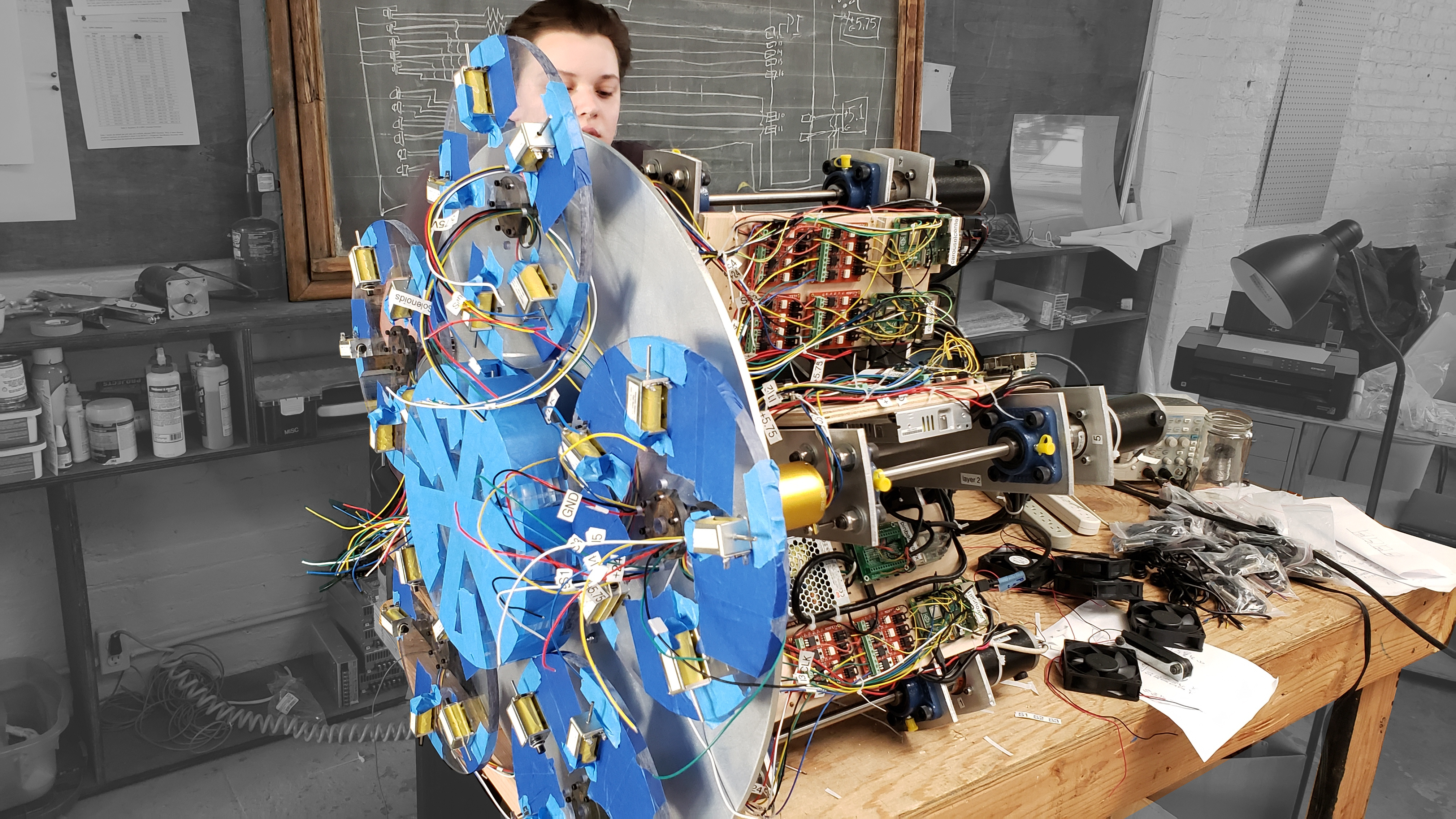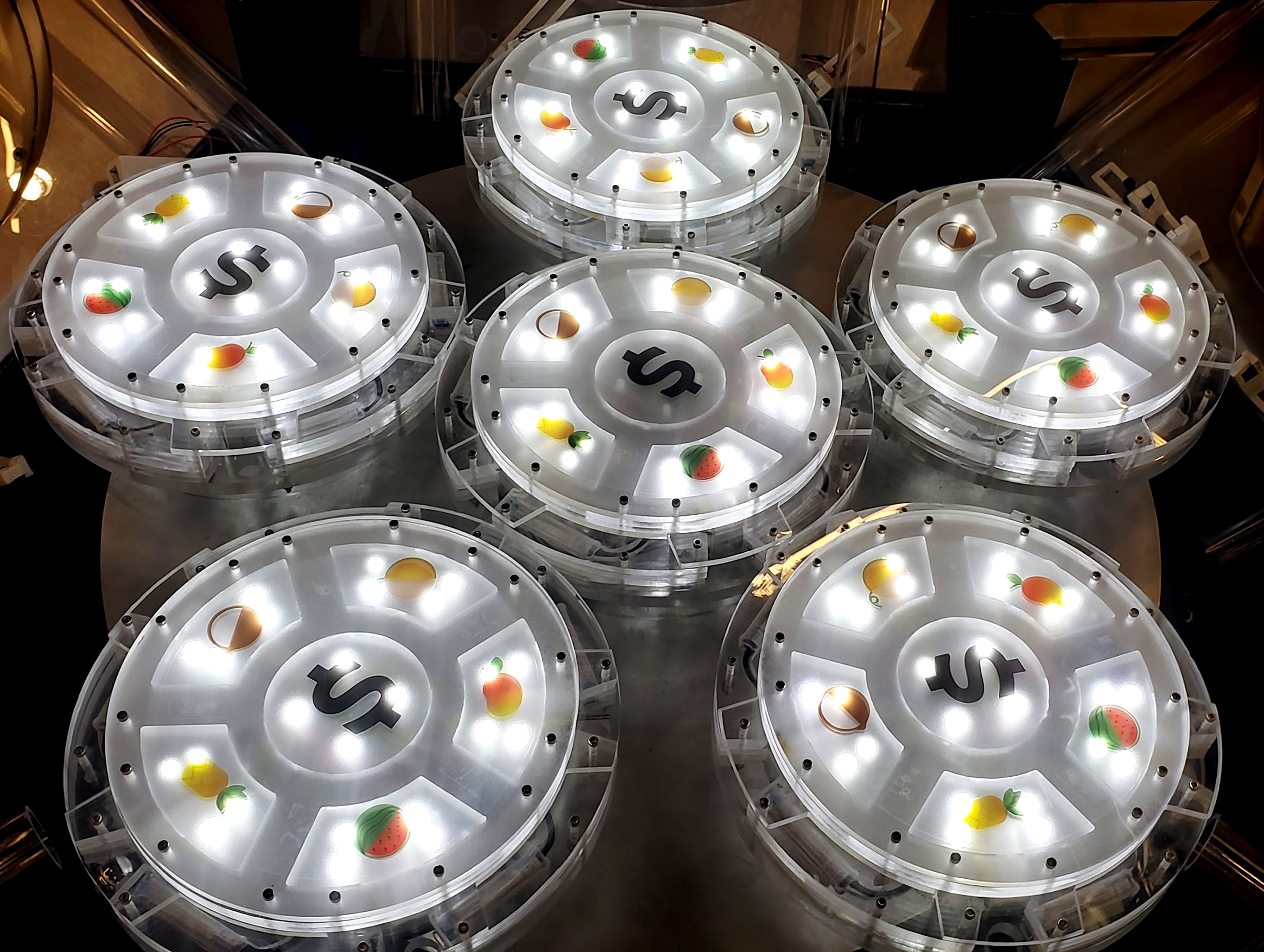 It includes the ten tubes that store and launch balls, the six rotating carousels, their 30 ball-pockets with sensors and solenoids, 144 channels of lighting, and thousands of lines of code distributed on twelve networked computers.