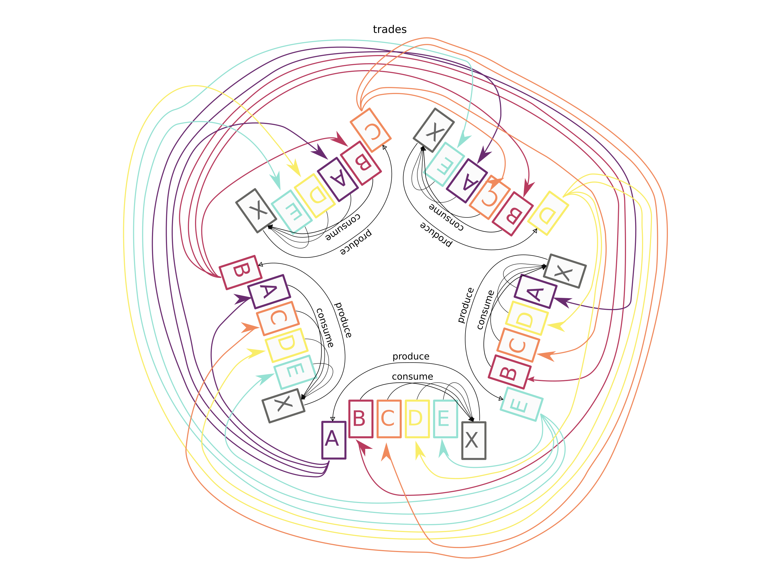 The exchange pattern between the five players