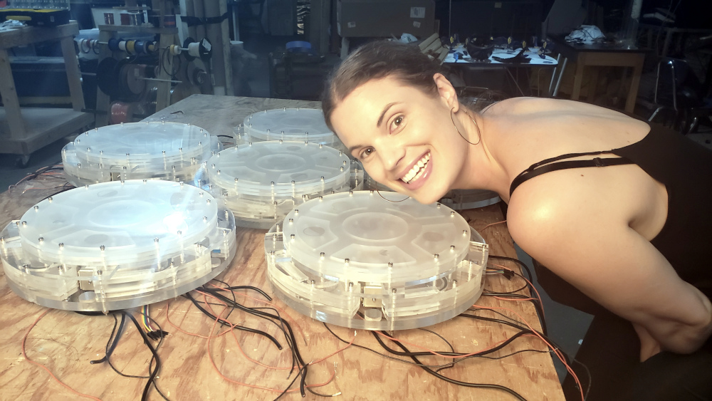 Yvette assembling the mechanical parts of the playfields