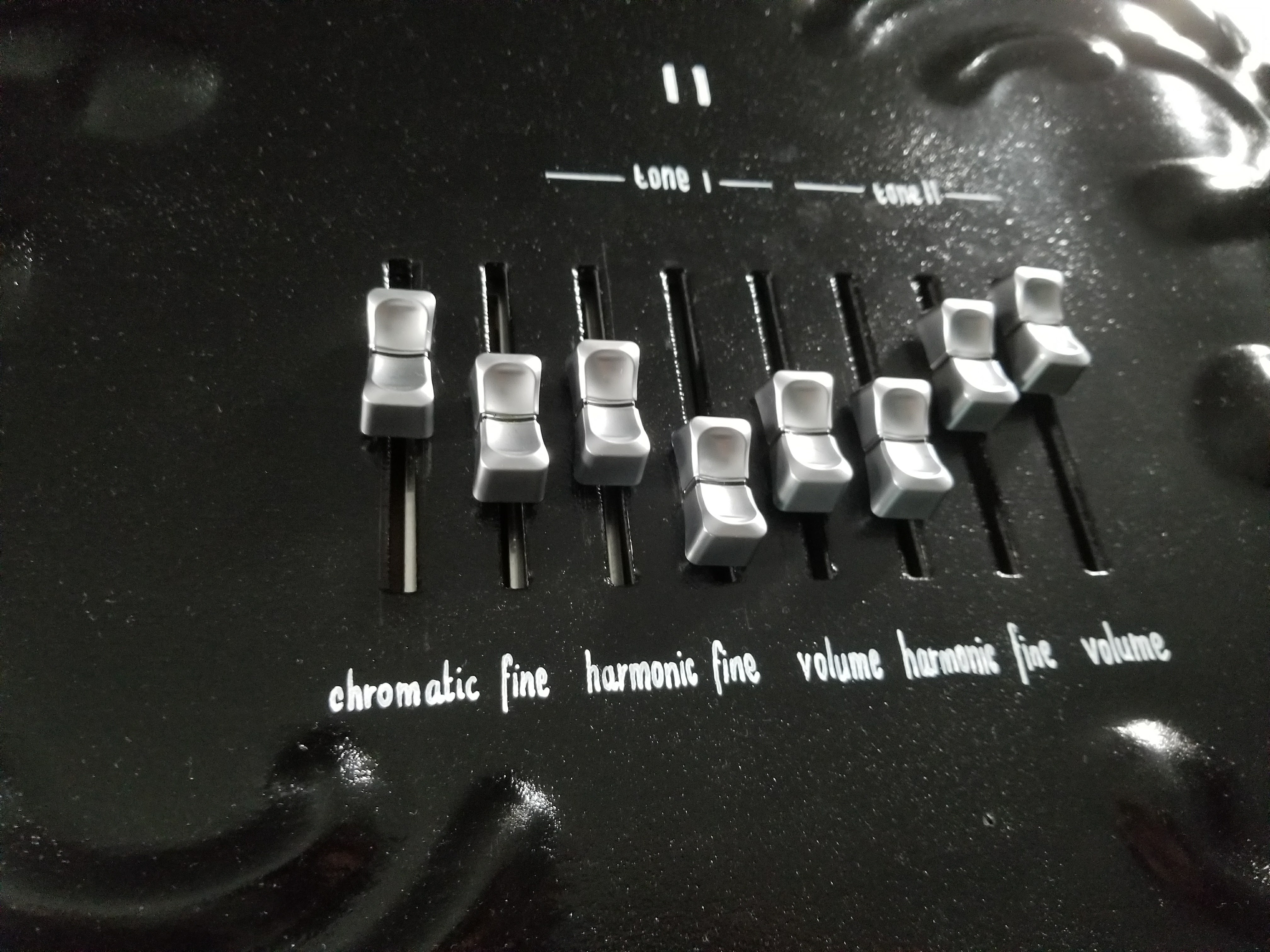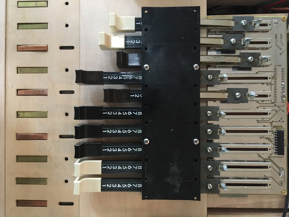 drawbars from an electric organ. Their numbered detents were