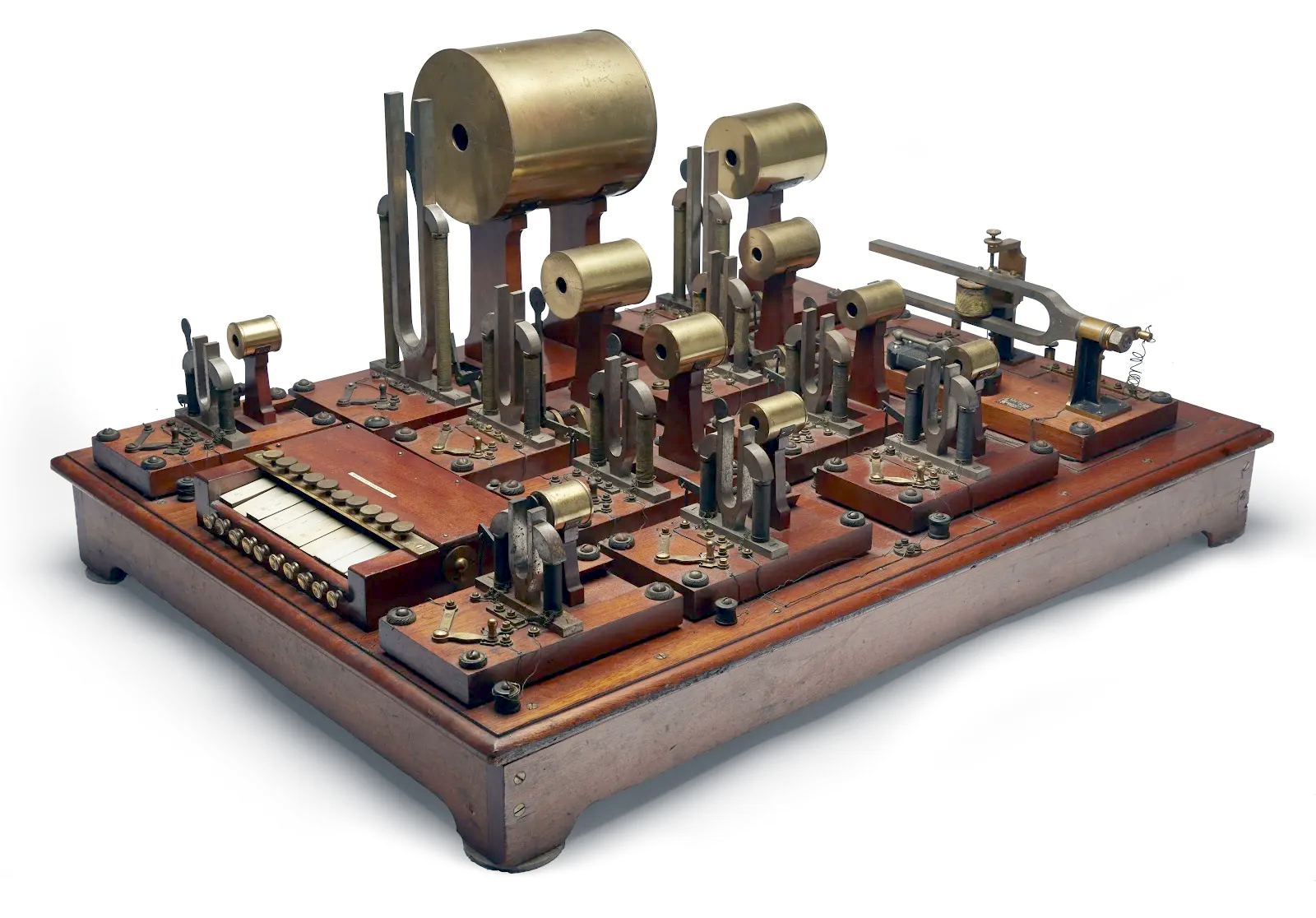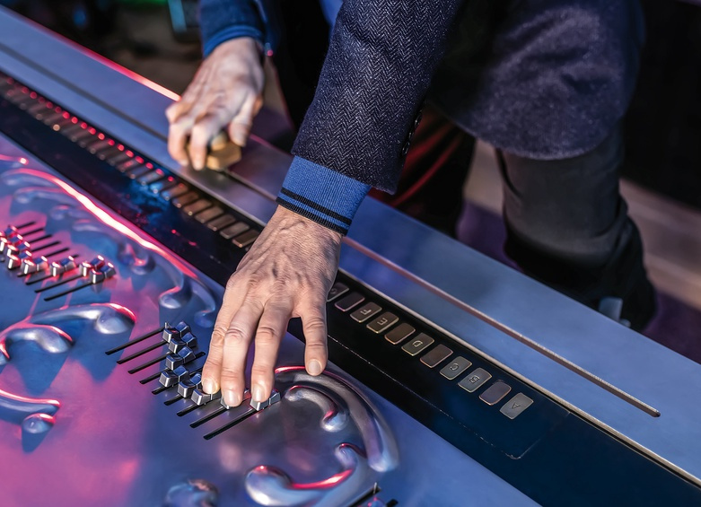 The brass knobs on the right control vowel formants and mixer