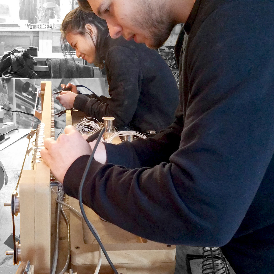 The voice keys are made from slabs of aluminum with a