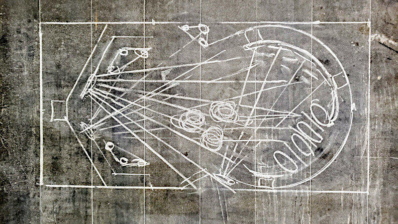 My blackboard sketch of the playfield and its angles.