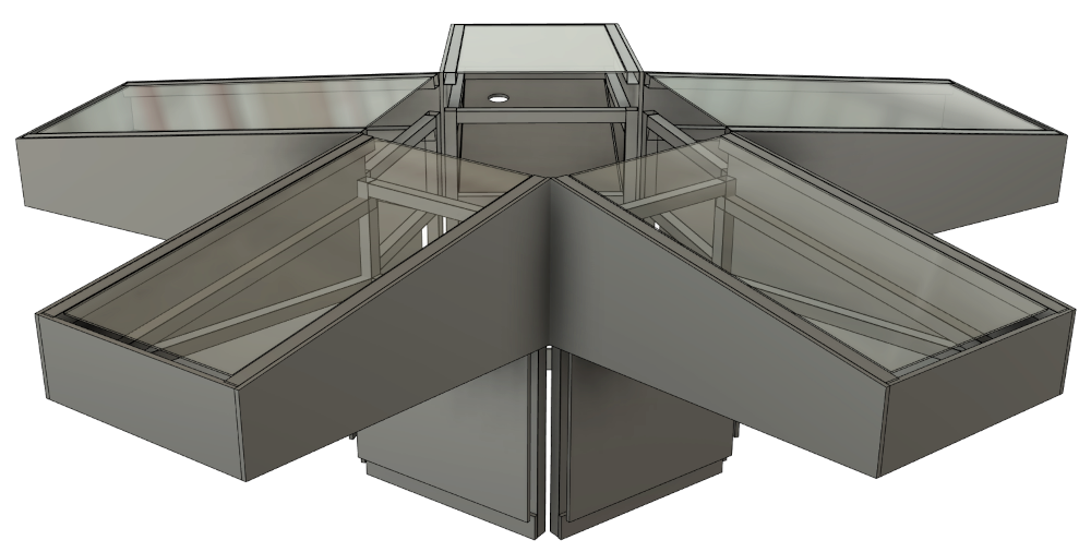 We start with detailed CAD models that include layers of aluminum plate, polycarbonate, and wood and all of the components, fasteners, and wiring.